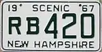 January 1987 – March 1989 | Embossed forest green serial on reflective white plate; "NEW HAMPSHIRE" screened in pale green centered at top, with a graphic of the Old Man of the Mountain in a circle between the two words | "Live Free or Die" screened in pale green centered at bottom | 123456 | 1 to 999999 | |