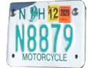 Motorcycle | 1987–94 | Embossed green serial on white plate with border line; green Old Man of the Mountain graphic screened at top left with 'N' and 'H' on either side; "MOTORCYCLE" screened at bottom | none | 12345 | 1 to 99999 | |