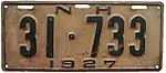 1927 | Embossed dark green serial on white plate with border line; "N H" and "1927" centered at top and bottom respectively | none | 12-345 | 100 to approximately 95-000 | |
