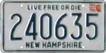 January 1979 – December 1983 | Embossed forest green serial on reflective white plate with border line; "NEW HAMPSHIRE" centered at bottom | "LIVE FREE OR DIE" centered at top | 123456 | 1 to 999999 | |