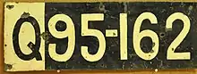 - From April 1, 1925 until 1955, the plates were "Q|123-456". The "Q" area was painted black on a white background, while the numbers were painted white on a black background. A dash was placed before the last three digits.