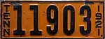 1921 | Embossed black serial on orange plate with border line; vertical "TENN" and "1921" at left at right respectively | 12345 | 1 to approximately 94000 | |