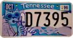 State Parks | 1993 | Embossed black serial on white plate. "Tennessee State Parks" screened at top in green with purple wildflowers screened in background. | EV12345 | Font used for "Tennessee" script same as the one used on roadside state border sign. Sample at left also carries curious single month-year validation sticker, seen only in 1994 and only on select plates. | |
