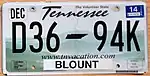 Vehicle registration plates of Tennessee