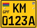 27x20 cm Black on yellow Gambian Flag as well as the text GPF on the top left corner of the license plate | |||