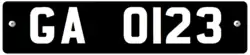 52 cm x 11 cm Black on White Gambian Flag as well as the text GPF on the left side of the license plate |