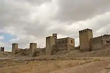 When war broke out between Emperor Alfonso VII of León and Castile and King García Ramírez of Navarre in 1136, Count Ladrón's land were plundered and the count was captured by Alfonso's forces. On 14 September, Ladrón did homage to Alfonso for the county of Álava, transferring his allegiance from Navarre to Castile. Guipúzcoa and Biscay, however, probably remained outside of Castilian control. It is likely that the lands were administered by Vela during Ladrón's captivity, since the count's son was already an adult by then.[7] In 1137, Vela succeeded his father in the tenancy of Aibar in central Navarre. He was still holding it as late as 1147, but by 1150 "count Ladrón was ruling [again] in Aibar and lord Vela in Leguín."[lower-alpha 3][8][9][10] There is a false document dated to 1149, which records how Vela came to possess a mayorazgo in Oñate: "I, Count Ladrón, by the grace of God, prince of the Navarrese, give to you my son, Vela Ladrón, all my inheritance that is in Oñate."[lower-alpha 4][11][10]