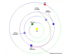 Venera 15 was launched on June 2, 1983, at 02:38:39 UTC[3] and reached Venus' orbit on October 10, 1983.[5]