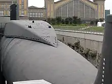 When on the surface a submarine's ballast tanks are filled with air which gives the vessel its buoyancy and in order for the submarine to submerge water is taken into the ballast tanks through the flood ports at the bottom of the tanks, effacing this excess buoyancy. As the ballast tanks contain air when on the surface it is necessary to allow this air to escape, so that water may then enter the tanks, and this air is allowed to escape via the opened vents in the top of the ballast tanks.