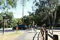 The Ventura River Parkway Trail was built on an abandoned railroad spur (CA_VEN-1109H) that was constructed by the Ventura and Ojai Valley Railroad in 1898 and acquired by Southern Pacific in 1899.[4] The rail trail, that runs along the easterly bank of the river, was designated a National Recreation Trail in 2014.[5] The "Ventura River Trail" part of the trail (completed in 1999) extends from the coast to Foster Park, and the "Ojai Valley Trail" part (completed in 1987) extends from Foster Park into the City of Ojai. The 15.8-mile trail (25.4 km), with the steady grade of the former Southern Pacific Railway right-of-way, is very popular with bicyclists, as well as walkers and horseback riders (on the Ojai Valley Trail segment). As of 2015, the vision of a "Ventura River Parkway," a network of trails, vista points, and natural areas along the river, is being actively pursued by a coalition of stakeholders.[6][7][8][9]