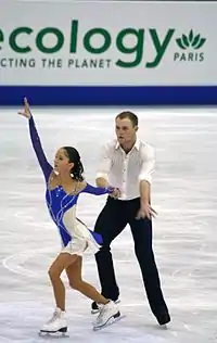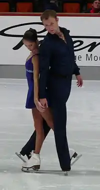 Bazarova/Larionov took silver at the 2007 World Junior Championships. In October, they won their first senior international medal when they claimed the bronze at 2007 Skate America. In December of the same year, the pair won gold at the 2007 Junior Grand Prix Final. However, in January 2008, they were disqualified and stripped of the medal due to a doping violation found in a blood sample Larionov gave before the Final.[6][7][8] Larionov was also suspended for two years, beginning on 18 January 2008.[9] His sentence was later reduced to 18 months and ended on 17 July 2009.[10] Bazarova decided to wait for Larionov: "There were offers from others, but I said right away that I'm not going to skate with someone else."[2]