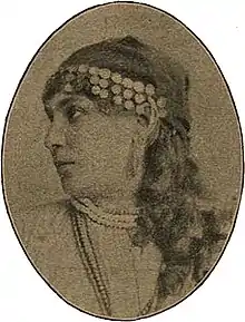 Vera Vasilyevna Zorina (Russian: Вера Васильевна Зорина; real surname Popova; 1853 - 1903) was a Russian operetta singer (mezzo-soprano), best known as a Russian romances (or 'Gypsy art-songs') performer. She became famous after playing the part of Stesha in the popular musical Gypsy Songs in Characters by Nikolai Kulikov. Another highly popular part of hers was La Périchole in the Jacques Offenbach's operetta. Vera Zorina (an ethnic Russian) is regarded as a founder of the "Gypsyan line" in Russian operetta.[1][2]
