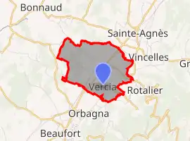 Vercia (French pronunciation: [vɛʁsja]) is a former commune in the Jura department in the Bourgogne-Franche-Comté region in eastern France. On 1 January 2017, it was merged into the new commune Val-Sonnette.[2]