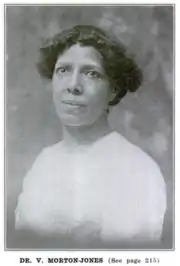 Verina Harris Morton Jones (January 28, 1865 – February 3, 1943) was an American physician, suffragist and clubwoman. Following her graduation from the Woman's Medical College of Pennsylvania in 1888 she was the first woman licensed to practice medicine in Mississippi. She then moved to Brooklyn where she co-founded and led the Lincoln Settlement House. Jones was involved with numerous civic and activist organizations and was elected to the Board of Directors of the National Association for the Advancement of Colored People (NAACP).