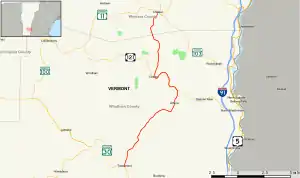 ![]() Map of southeastern Vermont with VT 35 highlighted in red | ||||