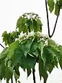 Vernicia montana, the mu oil tree,[1] or chine wood oil tree,[2] is a species of Vernicia in the spurge family, native to Southeast Asia (including Myanmar, Thailand, Vietnam) and southern China. It is a medium-sized deciduous tree reaching a height 20 metres (66 ft).[3] The Latin specific epithet montana refers to mountains or coming from mountains.[4] The leaves are large with three lobes. The monoecious white-petaled flowers emerged as inflorescences, containing both male and female flowers. The 2–3 inches (5.1–7.6 cm) fruit is a globular drupe with wrinkled skin that turns from green to yellow upon ripening. Each fruit contains 3 seeds, rich in oil.