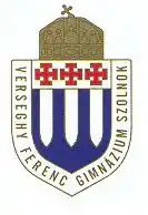 The inscription on the shield reads Verseghy Ferenc Gimnázium Szolnok.