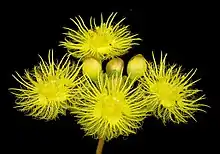 This verticordia was first grown in gardens in England in 1842. It can be propagated from cuttings and by seed, some garden specimens having self-sown. Its foliage, red young stems and bright yellow, perfumed flowers make this an attractive garden specimen. The variety preissii is often a more striking, compact small shrub with larger heads of flowers than the type variety. Both varieties need to be grown in light soils in a sunny location. They are usually frost tolerant but sometimes suffer from fungal infections.[1]