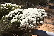This species is an attractive shrub when in bud and in flower and its dense bushy habit make it useful when not in flower. It strikes readily from cuttings but suitable material is often hard to obtain, even from cultivated specimens. It can also be propagated from seed. Established plants are hardy and frost tolerant but are killed by pruning when the entire flowering head is cut below the foliage.[2]