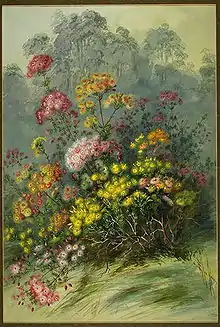 - Verticordia huegelii var. stylosa (Turcz.) A.S.George which is similar to var. huegelii but has flowers which are greenish-yellow when they first open;[2][6]