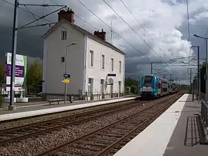 Vertou is a railway station in Vertou, Pays de la Loire, France. The station is located on the Nantes-Saintes railway. Since 15 June 2011 the station is served by a tram-train service between Nantes and Clisson operated by the SNCF.