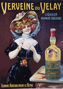 Verveine du Velay is a range of liqueurs created in Le-Puy-en-Velay by the distillery Pagès Védrenne. Their flavour derives from lemon verbena in a melange of thirty-two plants, spices and aromatic herbs. They are made by macerating these botanicals to form a strongly-flavoured green liquor, and mixing it with distillate which is then aged in oak casks.