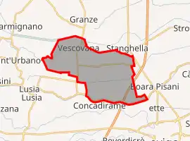 Vescovana is a comune (municipality) in the Province of Padua in the Italian region Veneto, located about 60 kilometres (37 mi) southwest of Venice and about 35 kilometres (22 mi) southwest of Padua. As of 31 December 2004, it had a population of 1,601 and an area of 22.3 square kilometres (8.6 sq mi).[3]