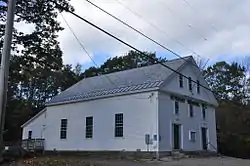 The Veterans' Memorial Hall, formerly the First Universalist Society Meeting House, is a historic community building on New Hampshire Route 32 in Richmond, New Hampshire. The 1+1⁄2-story clapboarded wood-frame building was built in 1837 by members of the local Universalist congregation. Richmond was the birthplace of Hosea Ballou, a theologian influential in the development of Universalism; he left the town before this building was built. As originally built, the meeting house had a small tower and belfry, which were removed in 1892 when the building was acquired by the local Grange. The building has seen only modest external alterations since then; the interior has had most of its religious trappings removed, but is also otherwise little altered.[2]