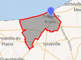 Veules-les-Roses is a tourism and farming village situated on the coast of the English Channel in the Pays de Caux, some 12 miles (19 km) southwest of Dieppe at the junction of the D68, D926 and the D142 roads.