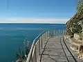 La via dell'Amore or The Way of Love (Via de l'Amùu in the Ligurian language) is a pedestrian path overlooking the sea, with a length of just over one kilometer, linking the villages of Riomaggiore and Manarola, Cinque Terre, in Liguria (Italy). It is one of four sections of the Sentiero Azzurro, "the Blue Path", the most popular hiking trail in the Cinque Terre National Park.[1]