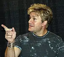 Victor Joseph Mignogna (/mɪnˈjɒnə/; born 1962 or 1963)[1] is an American voice actor and musician known for his voice-over work in the English dubs of Japanese anime shows, such as Edward Elric from the Fullmetal Alchemist series, which he earned the American Anime Award for Best Actor in 2007. Other animation roles include Broly from the Dragon Ball films, Tamaki Suoh in Ouran High School Host Club, Fai D. Flowright in Tsubasa: Reservoir Chronicle, Dark in D.N.Angel, Kurz Weber in the Full Metal Panic! series, Zero and Ichiru Kiryu in the Vampire Knight series, Christopher Aonuma in Digimon Fusion, Nagato and Obito Uchiha in Naruto Shippuden, Ikkaku Madarame in Bleach, Qrow Branwen in RWBY, and Matt Ishida in Digimon Adventure tri. In video games, he was the voice of E-123 Omega in the Sonic the Hedgehog series and Junpei Iori from Persona 3. In live-action work, he has participated in several Star Trek fan productions, including Star Trek Continues, where he plays Captain James T. Kirk. Mignogna has an official fanclub called Risembool Rangers.[2] He has been the center of multiple sexual assault allegations.
