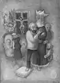 Oil, gouache, water colour, dry point, pencil, silver point, and other great skills. Koulbak uses them all in the style of the Masters of the Renaissance, adapting them to his personal aesthetic concept.[5]