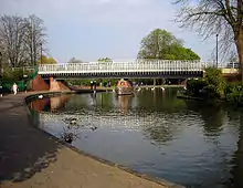 During the Second World War a temporary or emergency bridge was built over the Kennet and Avon canal, joining the park with the centre of town. The reason for this was because it was feared the Town Bridge was to be bombed which would have effectively split the town in two. Although it was supposed to be a temporary bridge it became a key crossing point and lasted up until 2001 when it was replaced with a new structure. Erroneously this was called the American Bridge because although it was built by civilian contractors for the War Office its plans had been stamped by the American Army, certifying its use for their forces. A major problem with the temporary bridge was that it was only 7 ft high, much lower than the recommended height of 8 ft 6 in.