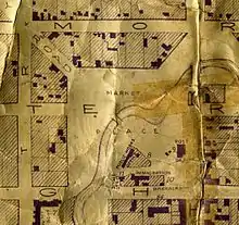 Christchurch was surveyed by Joseph Thomas and Edward Jollie in March 1850 and whilst the layout envisaged Cathedral Square as the centre of the new city,[10] for the next few decades, Market Place was the economic centre of Christchurch.[11] Important facilities were established there, including the first post office, the police station, a primitive lock-up for criminals, work stores, immigration barracks, and a market hall.[5] George Gould, the father of the prominent businessman and long-time director of The Press of the same name, had his general store on Colombo Street facing Market Square.[11]