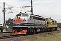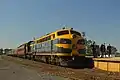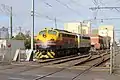 At the same time newer high power locomotives had been delivered, including the N class passenger units and the more numerous G class freight locomotives. The B class gradually retired by V/Line from 1982 with some scrapped. Six were purchased by West Coast Railway in the early 1990s for use on their Melbourne to Warrnambool passenger service.[7] While running with West Coast Railway, units B61 and B76 had dual marker lights and ditch lights fitted at the No.1 end. They also received shunter's steps at each end, in late 2001 or early 2002.[8][9][10][11] B65 was painted in the simplified West Coast Railway "freight" livery, and did not receive any of these upgrades.[12][13]