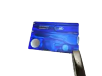 The SwissCard is roughly the size of a business card, typically with a small pair of scissors, a short non-folding knife, a small file with a screwdriver point, a plastic toothpick, tweezers, a slim ballpoint pen, and a straight pin, housed in a hard plastic case of 82 × 54.5 x 4.5 mm in size, with an inch ruler on one side and metric measurements on the other. Victorinox produces three types of SwissCards, the Classic, the Quattro and the Lite model. All three models differ in the number of functions they provide, ranging from 10 (Classic) to 13 functions (Quattro and Lite).[17]