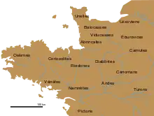 The Viducasses dwelled south of the Bodiocasses, north of the Aulerci Diablintes, southeast of the Venelli, northeast of the Abrincatui, west of the Lexovii, and northwest of the Sagii.[8]
