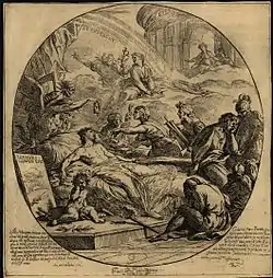 Once there, aged only thirteen, he was apprenticed to Benedetto Luti, who immediately set him to studying and copying the frescoes in the Farnese Gallery. Meanwhile, the Marquis directed him to paint religious ceremonies, ornaments at the Basilica of Saint Peter, fixtures at the Portuguese Embassy and even the Marquis' own carriage.[2] When it came time for the Marquis to return home, he wanted to take Vieira with him, but relented when Vieira begged to remain. He was allowed to stay for two more years and studied with Francesco Trevisani.[1]
