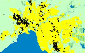 Over three-quarters of people born in Vietnam live in New South Wales (63,786, or 39.9%) and Victoria (58,878, or 36.8%).[7] In Melbourne the suburbs of Richmond, Footscray, Springvale, Sunshine and St Albans have a significant proportion of Vietnamese-Australians, while in Sydney they are concentrated in Cabramatta, Cabramatta West, Canley Vale, Canley Heights, Bankstown, St John's Park and Fairfield. Other places of significant Vietnamese presence include Brisbane, where many have settled in suburbs like Darra and Inala, Adelaide, Canberra and Perth.