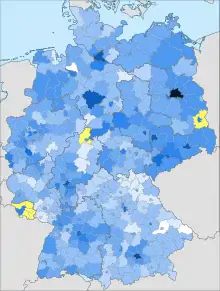 Due to the economic pressures on small retailers, the number of unemployed Vietnamese in Germany has shown an upward trend, rising to 1,057 individuals in 2000.[26] The unemployment rate is much lower outside of Berlin, as the competition is not as fierce due to the smaller population.