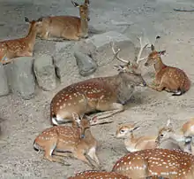 The Vietnamese sika deer (Cervus nippon pseudaxis) also known as the indochinese sika deer is one of the many subspecies of the sika deer. It is one of the smaller subspecies, due to the tropical environment they live in. They were previously found in northern Vietnam and possibly southwestern China, but may now be extinct in the wild.[1] There are plans for reintroducing this subspecies in the future.