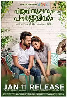Vijay Superum Pournamiyum (transl. Vijay Super and Pournami) is a 2019 Indian Malayalam-language romantic comedy film,[2] written and directed by Jis Joy, starring Asif Ali and Aishwarya Lekshmi, along with Balu Varghese, Siddique, Aju Varghese and Renji Panicker in supporting roles. It is the official remake of 2016 Telugu film Pelli Choopulu with Anish Kuruvilla reprising his performance. The film's musical score was composed by debutant Prince George. It was released on 11 January 2019 to positive reviews from the critics and the audience. The movie had a run of 100 days at Kerala box office.[3]