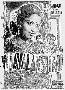 Vijayalakshmi is a 1946 Indian Tamil language film directed by P. Pullaiah. The film features B. R. Panthulu and M. V. Rajamma in the lead roles.[2]