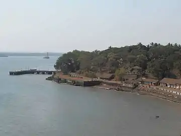 Vijaydurg Port is a natural harbour on the west coast of the district of Sindhudurg in Maharashtra, India. The port is situated midway between Malvan and Ratnagiri at the mouth of the Vijaydurg creek in Devgad taluka. Its coastal jurisdiction extends 10 km north up to the Jaitapur lighthouse. Goods weighing about 200 tons are generally loaded or unloaded at the port daily. The cargo brought by sea is transported by creek up to Kharepatan which is 26 miles up from Vijayadurg.[1]