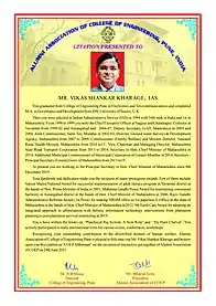- "Seasoned administrator Vikas Kharge took charge as the Principal Secretary of Chief Minister". Punekar News. 9 December 2019. Retrieved 23 January 2020.
