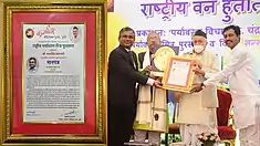 - 'Paryavaran Mitra' award at the hands of Hon. Governor of Maharashtra Bhagat Singh Koshyari given by Karnala Charitable Trust, Pune for commendable achievement of 50 crore tree plantation in the State.