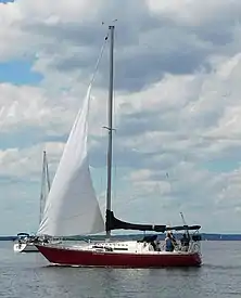The Viking 33 is a small recreational keelboat, built predominantly of fiberglass, with wood trim. It has a masthead sloop rig, a raked stem, a raised reverse transom, an internally-mounted spade-type rudder controlled by a tiller and a fixed swept fin keel. It displaces 8,807 lb (3,995 kg) and carries 4,512 lb (2,047 kg) of ballast.[1][3]