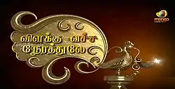 Vilakku Vacha Nerathula (Tamil: விளக்கு வச்ச நேரத்துலே) is an Indian Tamil-language soap opera that aired on Kalaignar TV. The show premiered on 18 January 2009. It aired Monday through Friday at 8:00PM IST. The show starring by Sujitha, Sanjeev, Anuradha Krishnamoorthy, Kaushik and Delhi Kumar.[1][2][3][4]