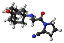 Vildagliptin, sold under the brand name Galvus among others, is an oral anti-hyperglycemic agent (anti-diabetic drug) of the dipeptidyl peptidase-4 (DPP-4) inhibitor class of drugs. Vildagliptin inhibits the inactivation of GLP-1[2][3] and GIP[3] by DPP-4, allowing GLP-1 and GIP to potentiate the secretion of insulin in the beta cells and suppress glucagon release by the alpha cells of the islets of Langerhans in the pancreas.