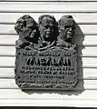 A commemorative plaque attached to the building in 1976. The text reads: "At this place was Väisälä scientist brothers, Vilho, Yrjö and Kalle's, home in 1904–1919. Joensuu Lyceum ex-students".
